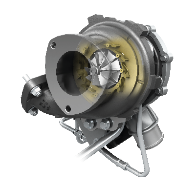 Variable nozzle turbocharger for efficient boost at all engine speeds.
